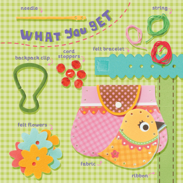 As a young child's first guide to sewing, the developing this kit presented several challenges — such as a plastic needle without a sharp end, and avoiding knots. Thus, this project required extensive development, testing and product design. The graphic intention sought to create a playful and homespun feel.
